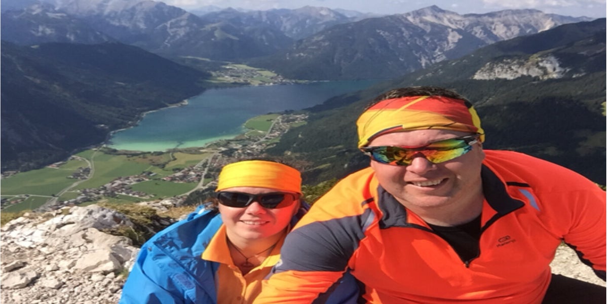 Da möchte man am liebsten gar nicht weg, aber wir hatten ja noch etwas vor. Nun beginnt der Aufstieg zum Joch. Der Steig führt meist durch Latschenkiefern über Schotterwege, stetig, steil bergan. Schwindelfreiheit sollte da gegeben sein, denn immer wieder ist der Blick frei in das Inntal und auch zum Achensee. Eine kleine Felswand muss mit Händen und Füssen überwunden werden. Der Schweiß läuft bei den Anstrengungen ebenso kontinuierlich, wie der Weg ansteigt. Nur langsam kommt der Gipfel in Sicht. Respekt zollen wir Wanderern, denen wir begegnen und welche wesentlich älter sind wie wir. Das stachelte auch noch den Ehrgeiz an.