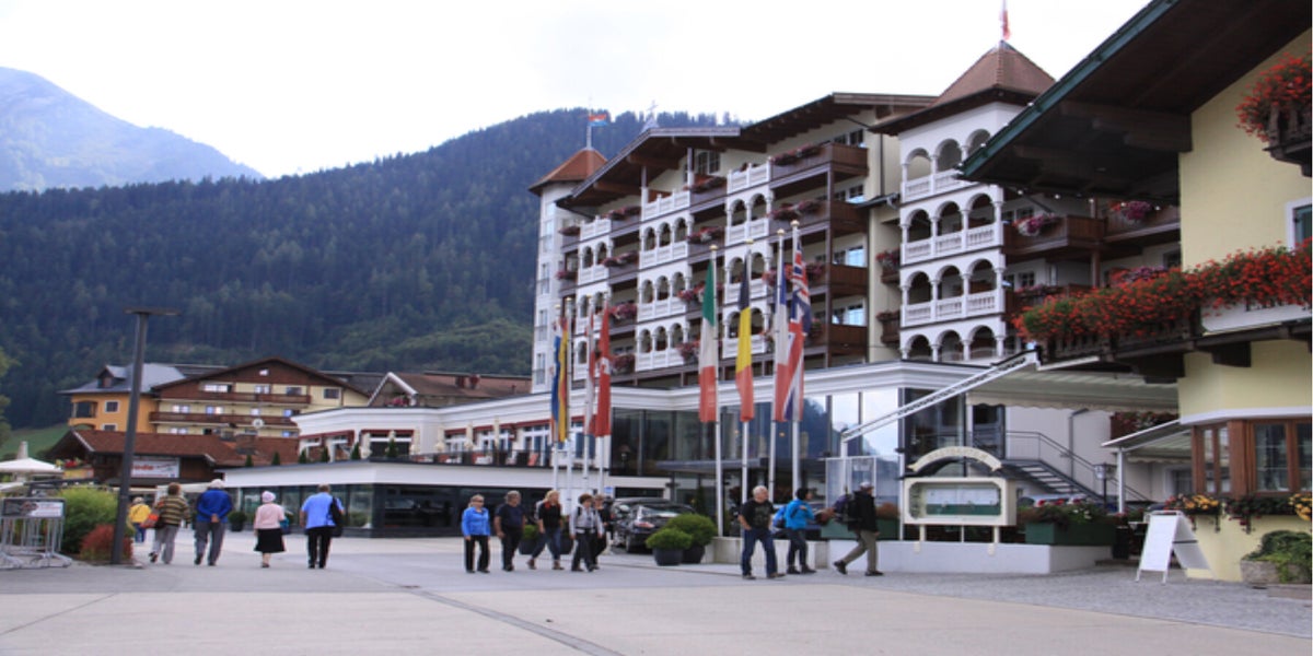 Pertisau grüsst mit vielen großen Hotels und jeder Menge Touristen.