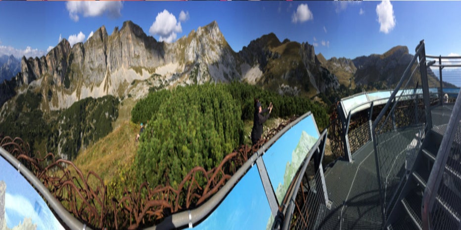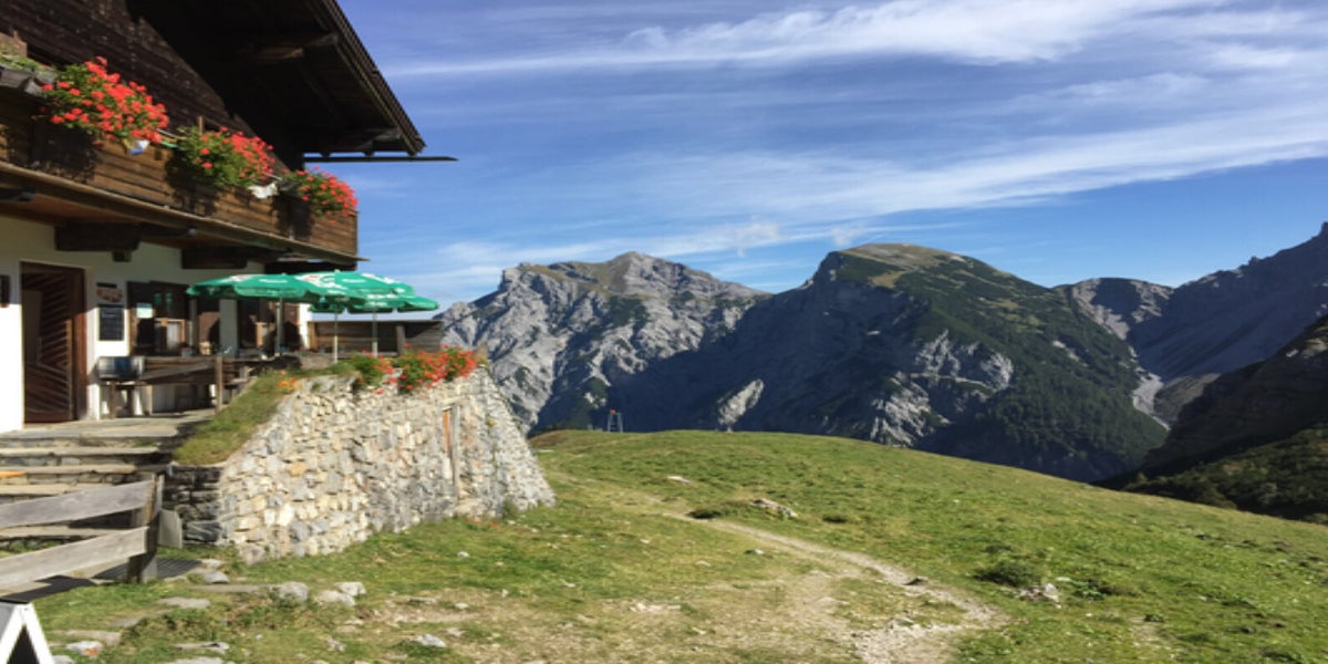 Nach einigen Fotos und dem Genuss des Ausblicks auf die Dalfazer Wänder und das Rofangebirge, beschliessen wir den Abstieg zur Erfurter Hütte. Auf der Sonnenterrasse konnten wir nochmal einen ausführlichen Blick erhalten, von unserer Tour zum Ebener Joch. Das wir diese schroffe Spitze erklommen hatten schien uns heute fast undenkbar. Bei Radler, Wiener Schnitzel und Kaiserschmarren beschliessen wir die heutige Tour und kehren mit der Seilbahn in das Tal zurück.