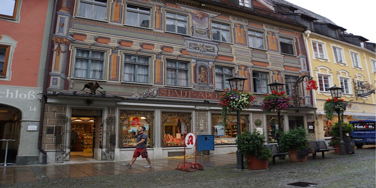An den Kühen vorbei gehts weiter nach Füssen. Wir finden ein zentrales Parkhaus und gehen von dort in die Altstadt. Eine wunderschöne Altstadt, sehr gepflegt und sauber. Herrliche historische Gebäude.
