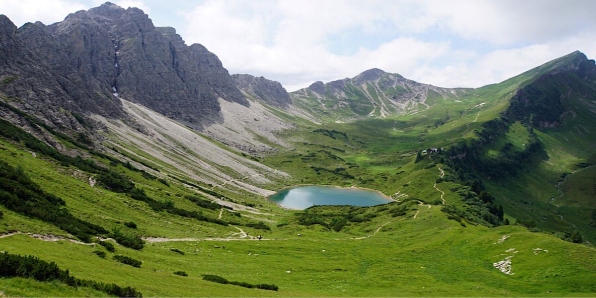 Beim Blick zurück zum Vilsalpsee ist man schon überwältigt. Der Blick mit jedem Schritt höher, wird der Blick weiter übers Tal und umliegende Gebirgszüge.