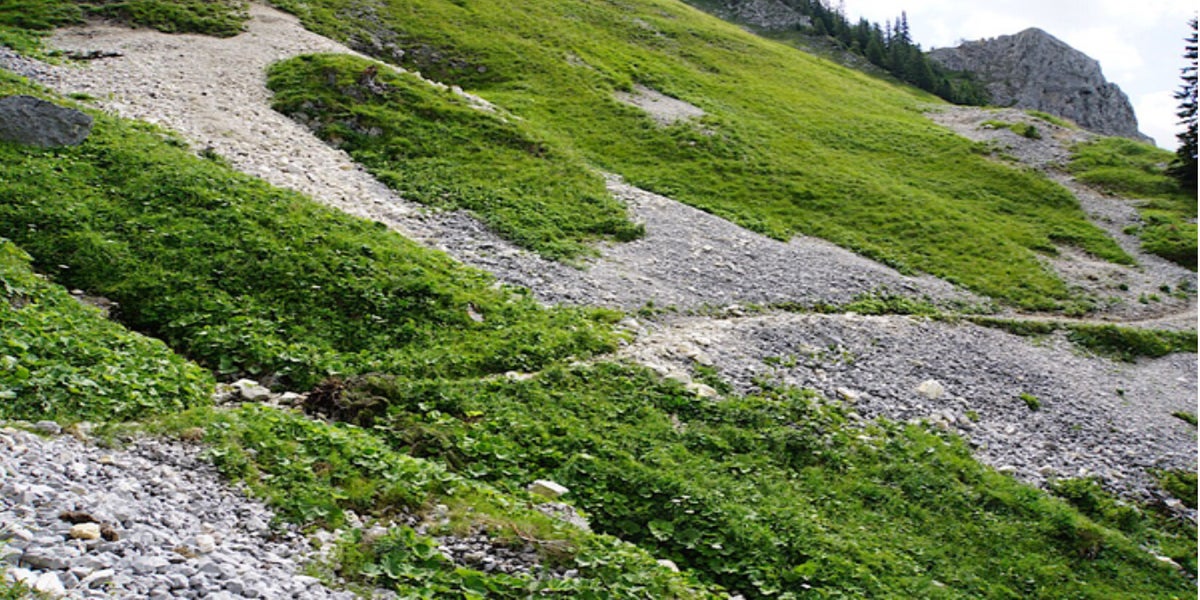 Jetzt geht es schon an die ersten Kraftreserven. Vorbei an der Schochenspitze, geht es immer wieder auf und ab. Der Weg zieht sich nun sehr zäh lang hin. Gut zu laufen, ohne große Höhenunterschiede. Die üblichen Wegbegleiter dürfen nicht fehlen.