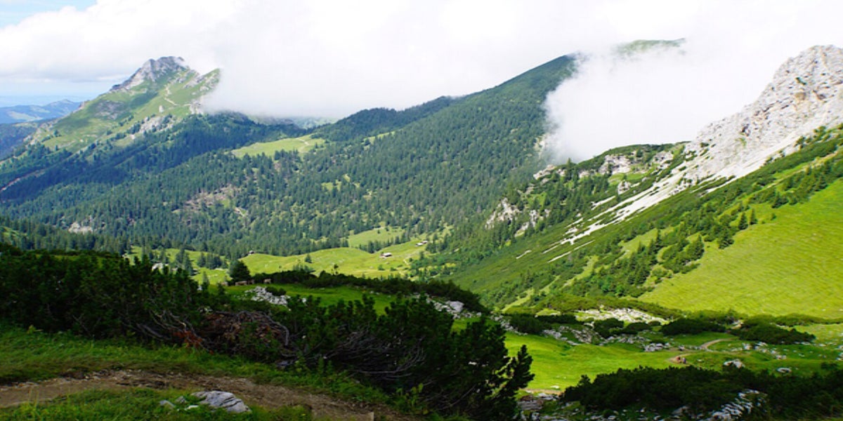 Von der Ödenalpe gibt es einen herrlichen Blick in das Birkental. Die beobachteten Gemsen bewegen sich um die Litnisschrofen.