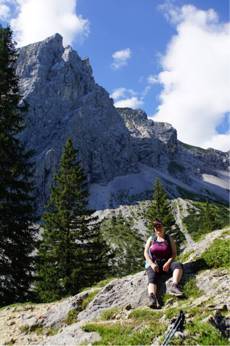 Wir wurden von vielen fitteren, jüngeren Menschen überholt. Die meisten wollten an den steil, aufragenden Felsen oberhalb des Gimpelhauses klettern. Ja mit diesen flotten Wanderern können wir nicht mithalten. Das ist ja auch nicht unser Anspruch.