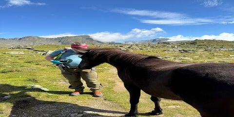 Nach diesen Eindrücken, geht es weiter zur Drei Seen Hütte. Der Weg wird einfacher und führt teilweise über eine geschotterte Strasse. Dabei trafen wir auf eine Gruppe von Pferden. Eines wollte sogar von sich aus kuscheln und lief zielgerichtet auf uns zu. Einfach schön. Die Schafe waren da nicht so zutraulich.