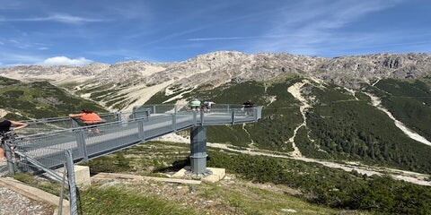 Von hier geht es mit den Imster Bergbahnen weiter den Berg hinauf. Eine gute Fernsicht in das Gurgeltal, Pitztal, Ötztal und oberes Inntal, erfreuen einen an der Bergstation. Hier konnte man auf Sonnenbänken die Aussicht geniessen und auch den Paragleitern beim starten und fliegen zusehen.