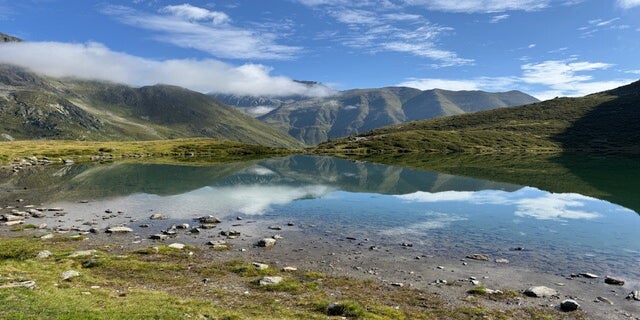 Wir haben viel vor, also los geht es. Der Weg führt zuerst langsam aber stetig bergan über Bergwiesen, welche von Kühen, Schafen und Pferden gepflegt und abgegrast werden. Der Blick über die Region Kühtai wird immer weiter, einfach beeindruckend. Das erste Ziel, der Hirschebensee kommt auch in Sicht.