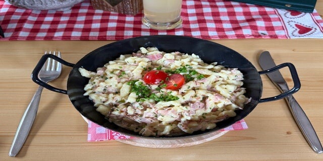Angekommen auf der Alm, einmal kurz umsehen und dann in die trockene Gaststube und Energie tanken nach 690 Höhenmeter.