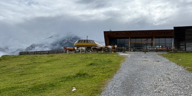 Heute haben wir eine Reservierung für das Cafe 3440, am Pitztaler Gletscher. leider spielt das Wetter, wieder einmal in diesem Urlaub, nicht mit. Wolken und Regen hingen in der Höhe fest und liessen nur kurze Lücken zu.