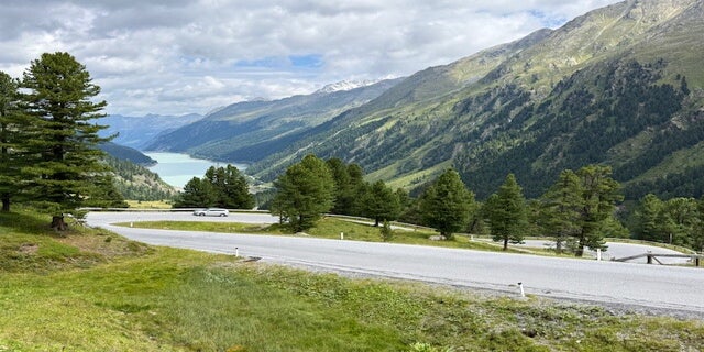 Heute nutzten wir das relativ stabile Wetter, für eine Panoramafahrt auf der Kaunertaler Gletscherstrasse. Eine wunderschöne Route, für Fahrer und Mitfahrer. Als Fahrer die Herausforderung von 29 Kehren bis zur Talstation der Karlesjochbahn und für die Mitfahrer die fantastische Aussicht zum Stausee und hinauf zu den Bergen und Felsen. An jeder Ecke hätte man anhalten können und gucken und geniessen können. Kühe am Strassenrand der Kehren und ein Murmeltier, das über die Strasse gelaufen ist und kleine Wasserfälle direkt am Strassenrand sind interessante, zusätzliche Highlights. Unser Fahrzeug ist tapfer hinauf geklettert und später auf wieder abwärts. Vom Parkplatz ging es mit der Karlesjochbahn hinauf. Am Joch verläuft die italienisch - österreichische Grenze. Man kann bis zum Reschensee schauen und auf der gegenüberliegende Seite ein wunderschönes Gipfelpanorama. Am besten lasse ich die Fotos sprechen.