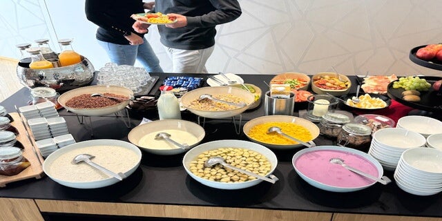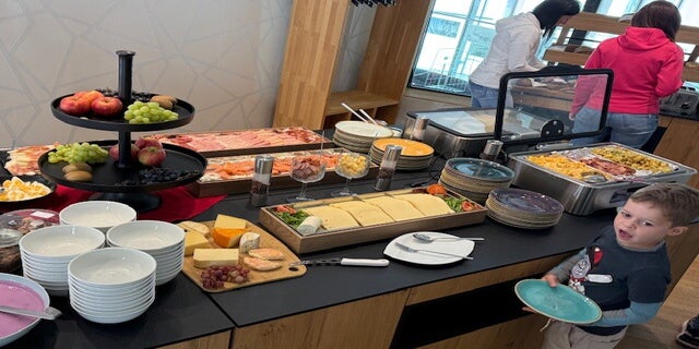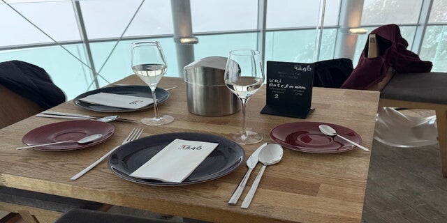 Angekommen auf dem Gipfel, gab es keinen Ausblick mehr, leider. Erstmal genossen wir das Frühstücksbuffet in wunderschönem Ambiente. Wenn es dann noch Ausblicke gegeben hätte, wäre man sicher nicht zum Essen gekommen.