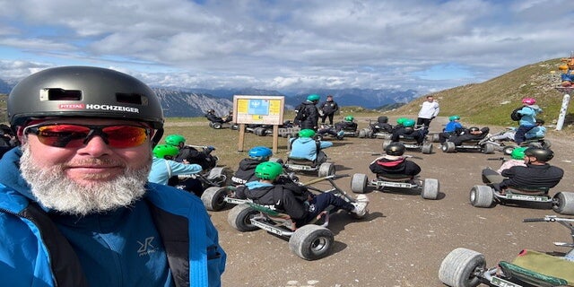 Ich habe mich nochmal für eine besondere Mountaincarttour angemeldet. Eine komplette Abfahrt vom Hochzeiger bis zur Talstation. Insgesamt 10km. Zuerst freie Fahrt bis zur Mittelstation. Danach der Zusatz, etwa 6 km geführt über öffentliche Forststrassen. Geniale Strecke.