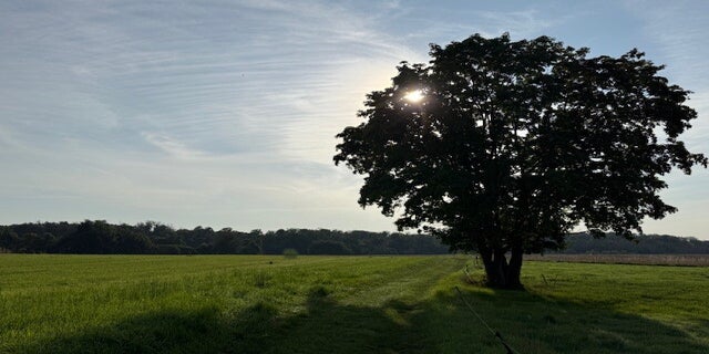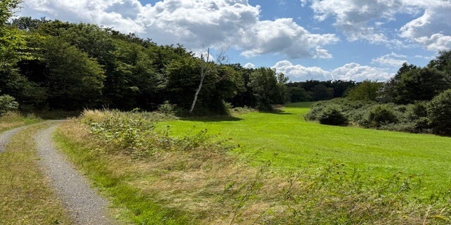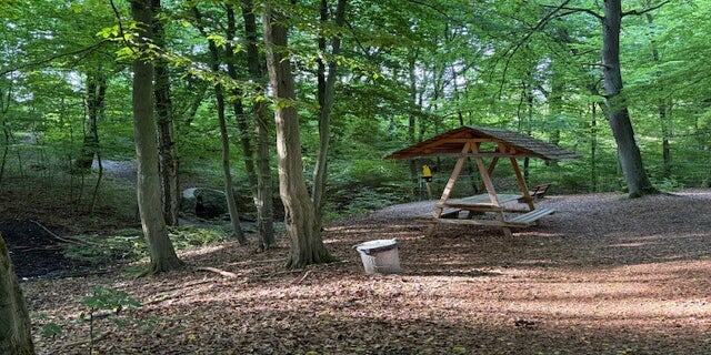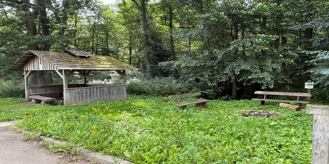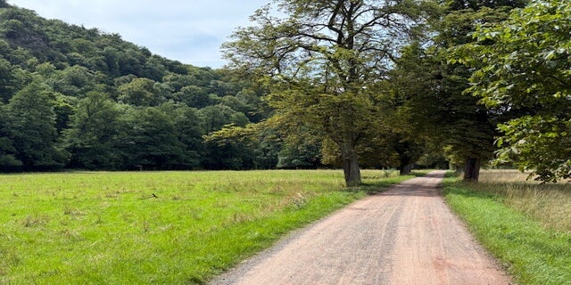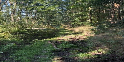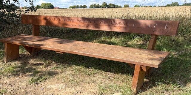 Meine heutige Wanderung zum Stempel sammeln, beginnt in Meisdorf. Dort steht ein Mausoleum und der erste Stempel des Tages. Danach geht es richtig los. Hinein in den Wald und gleich mit einem knackigen, langgezogenem Anstieg. 100 Höhenmeter habe ich da überwunden. Gut zu gehender, breiter Wald-/Forstweg. Entspannt führt der Weg schnurgerade entlang zum Degenhausener Landschaftspark.