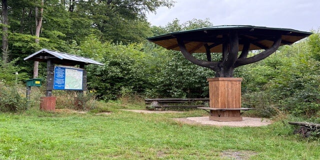 Wetterbedingt bin ich heute erst mittags gestartet und bin der HSB (Harzer Schmalspurbahn) zur Haltestelle Sternhaus Ramberg gefahren. Bei leichtem Regen geht es auf einer langen, geraden Forststrasse, die ersten Kilometer entlang. Vorbei an der Pension Sternhaus, weiter auf der Forststrasse zur Stempelstelle Schirm. Unschwer zu erkennen warum diese so heisst.