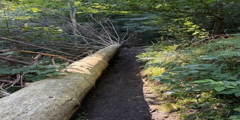 Auf erwähnter Forststrasse ging es dann erstmal ein Stück weiter, bevor ich zur Selkesicht, rechts auf eine Waldweg abbog. Schön schattig und den Buchen, geht es auf und ab zur Stempelstelle. Ein Eichhörnchen habe ich da wohl auf beim Nestbau gestört.