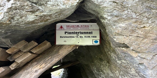 Heute geht es wieder direkt von der Unterkunft los, Richtung Alexisbad. Durch den Ort führt die geplante Route auf eine wenig genutzte Forststrasse. Wildschweine nutzen diesen Weg allerdings öfter. Aber trotzdem begehbar, führt der Weg zur ersten Stempelstelle, Verlobungsurne. Von nun geht es eine ganze Zeit entlang der Selke, teils auf dem Selketalstieg. Ein sehr Weg und herrlich zu gehen. Vorbei an der Petruskapelle und dem Adoplh Felsen mit einem kleinen Tunnel.